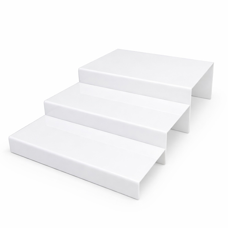 Suport pentru prezentarea produselor mici (prăjituri, minitorturi, diverse deserturi și aperitive) într-o formă modernă și elegantă, alcătuit din 3 trepte de înaltime diferită.