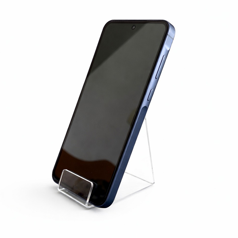 Suport simplu din plexiglas transparent pentru expunerea telefoanelor mobile.